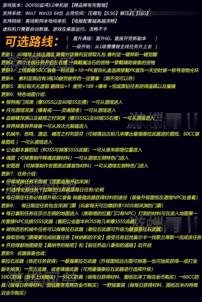 最新整理DOF单机60级怀旧5.0版带GM老版本角色技能原汁原味怀旧+GM工具+视频教程